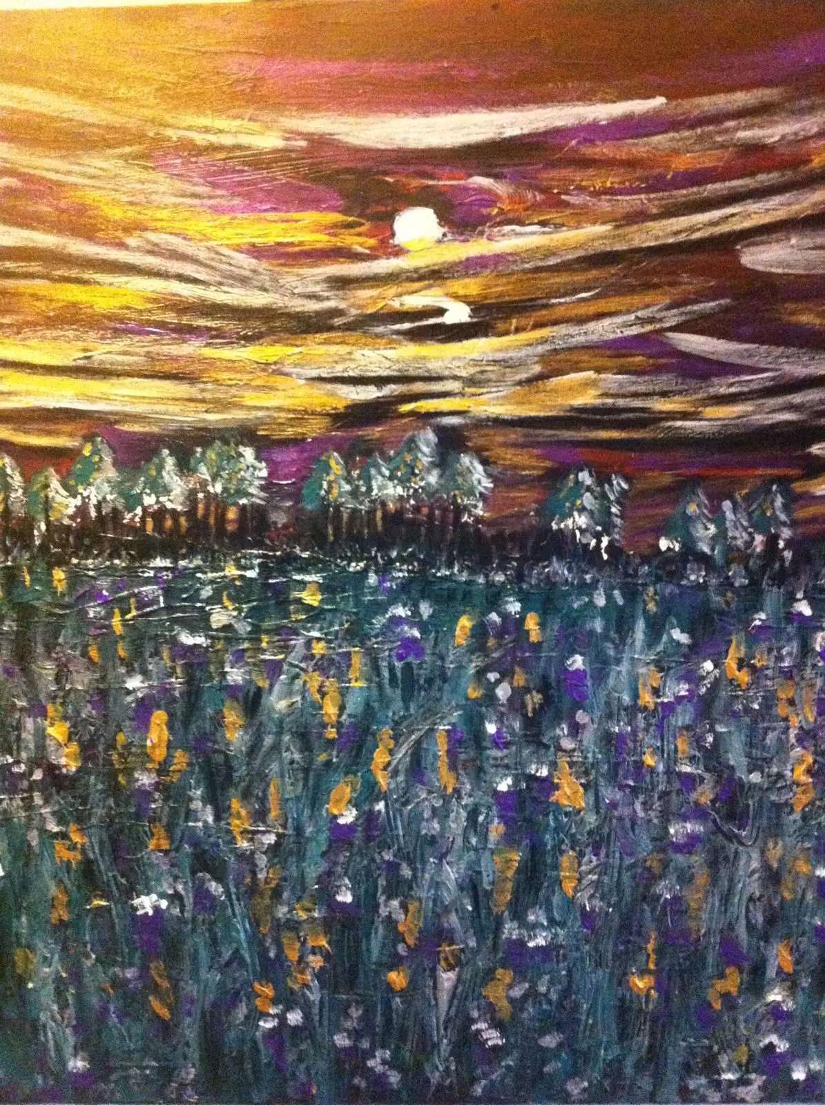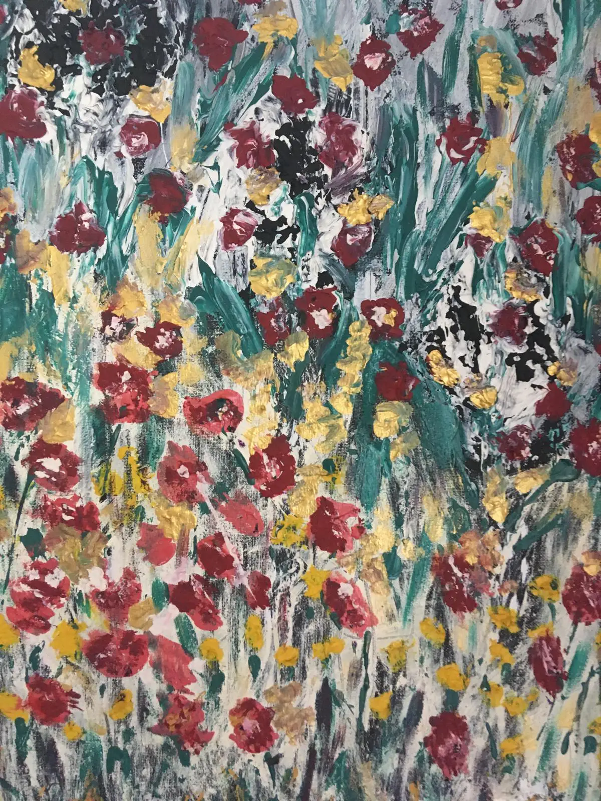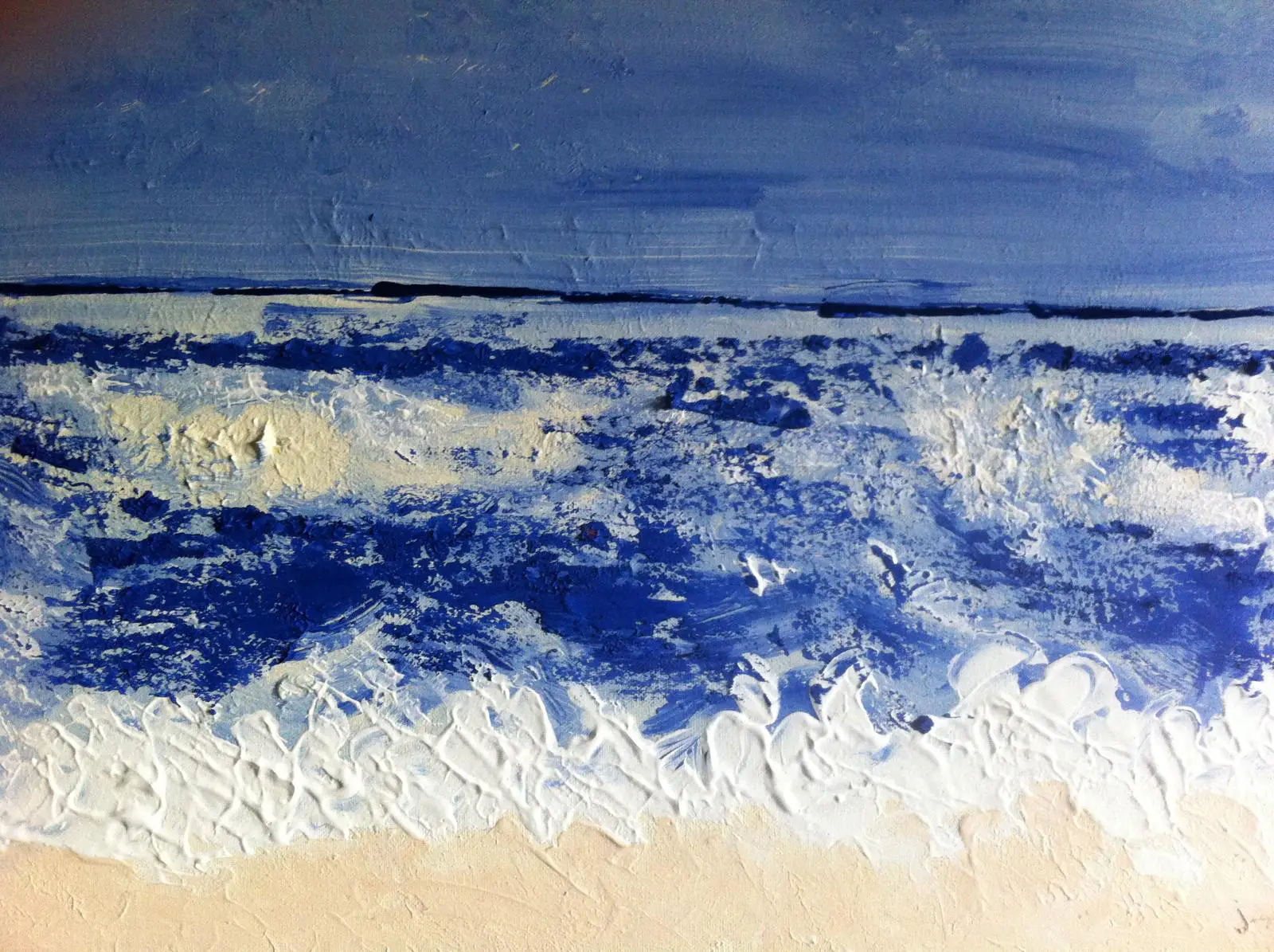 The art is abstract symbolic. The image of Gabriel seen here appeared to her after a serious road crash. Maree set about re creating the vision alongside 50 other vibrant art works. An art historian visited the gallery and wrote the following to Maree “I dropped in on the Byre Gallery and was enthralled . She said “they left me moved and enthralled, this is a talented artist, her work reminds me of Marc Chagall.”